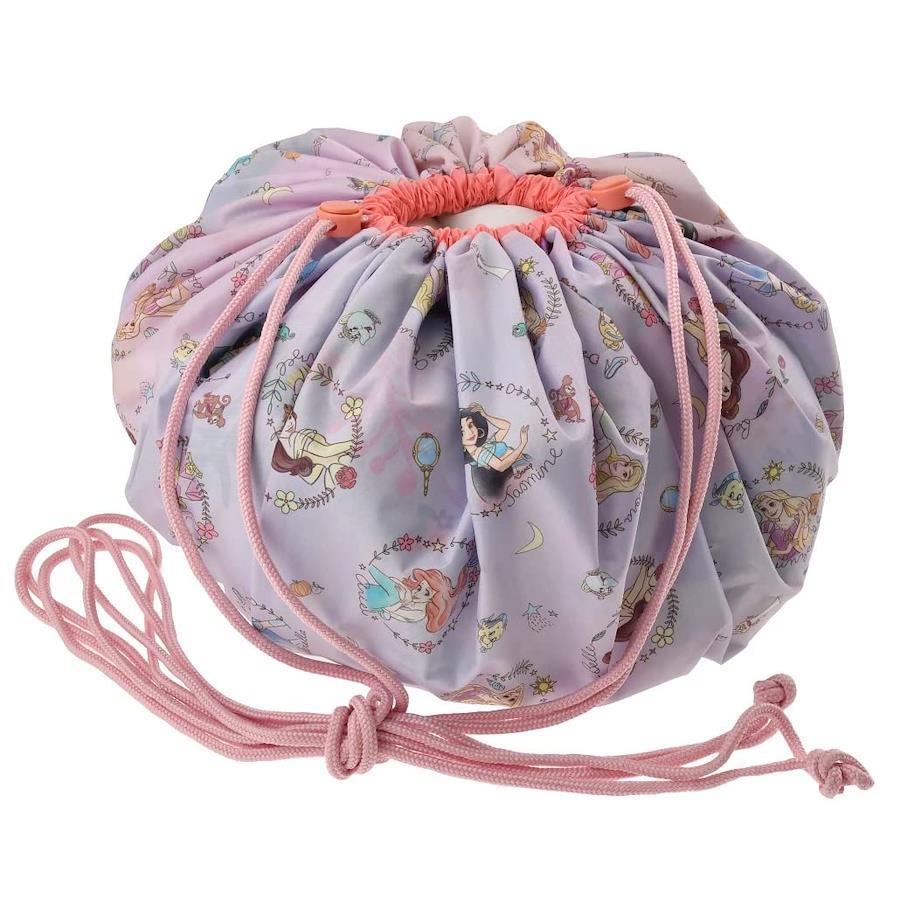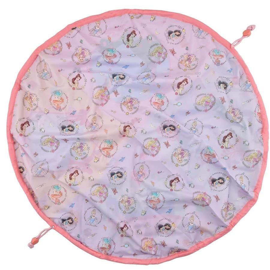 プレイマットとしても使える、ディズニープリンセスのおもちゃ収納巾着。 ディズニープリンセスがエンブレム風に描かれた総柄プリント。反対面は、キャラクターをイメージした窓が描かれています。どちらの面も使えるリバーシブル仕様です。 遊び終わったら紐を絞って結ぶだけなのでお片付けもラクラク。いつも使うおもちゃをまとめて収納できる便利なアイテムです。
