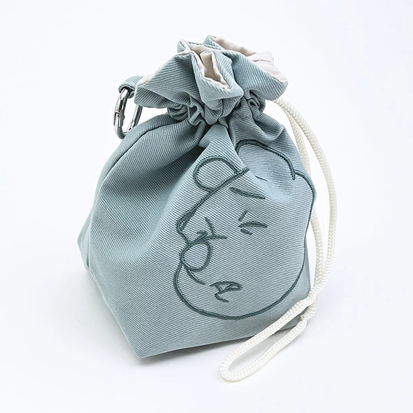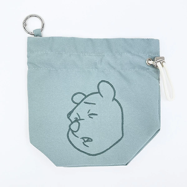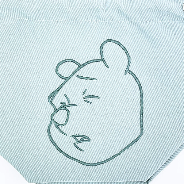プーさんが刺繍された巾着♪イヤホンやアクセサリー、薬など小さい物を入れておくのに丁度いいサイズ♪カラビナ付きなので、バッグなどに吊るしておくこともできます♪