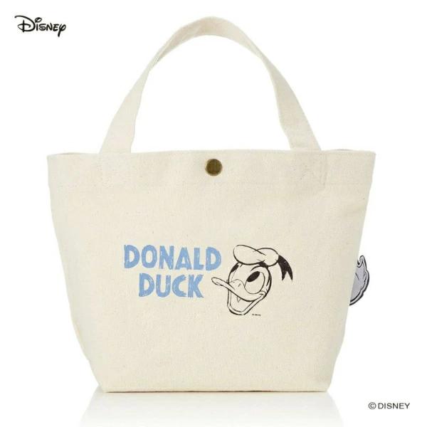 ディズニー(ドナルドダック)のかわいい帆布ミニトートバッグです。お昼のランチトートや、財布やスマートフォンだけ持ち運ぶのにちょうどいいサイズ感なのでスーパー、コンビニでのちょっとしたお買い物にも◎ドナルドのしっぽが見えていて可愛いデザインです☆彡