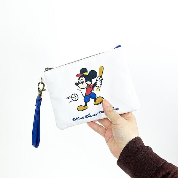 懐かしいデザインのミッキーがかわいいフラットポーチ。フラットなのでバッグにスマートに入る♪コスメや小物の持ち運びに◎