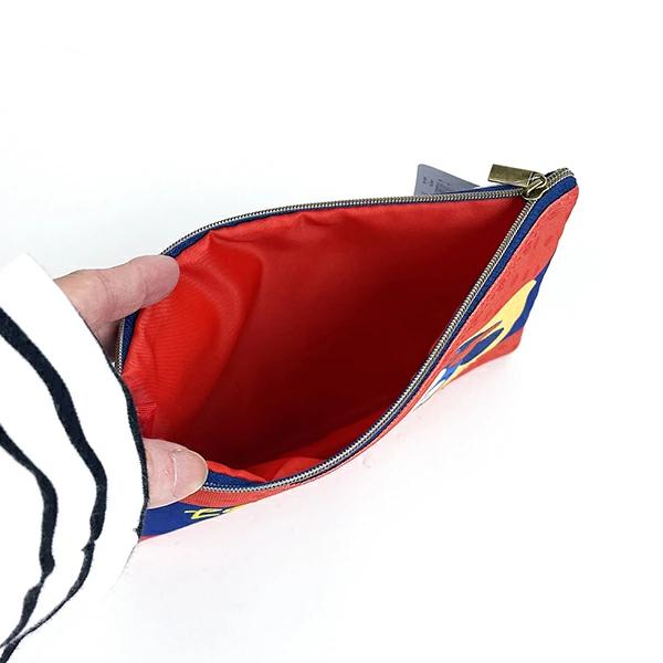 裏と表で素材が違うのが面白い♪フラットポーチなので薄型で持ち運びに便利です。
