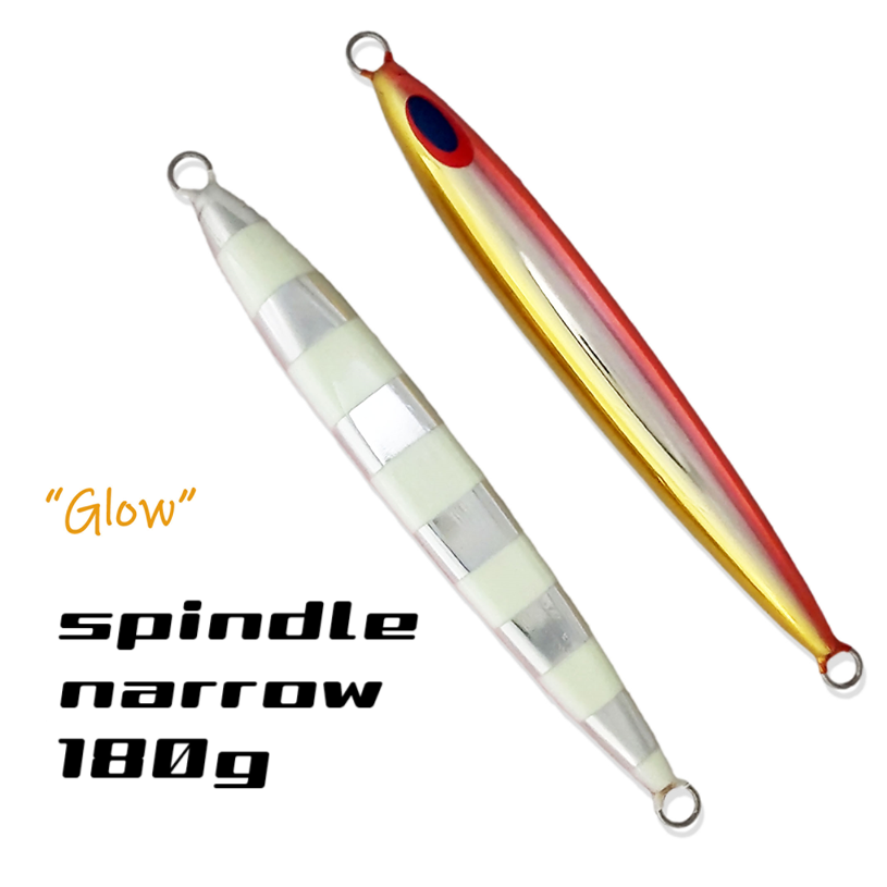 スピンドルの強みでもある、上げ下げ時のアピールを抑えたナチュラルアクションでの喰わせ。 スピンドルナローはこの強みに、抜け過ぎない程よい抜け感でよりスピード感のある、またはメリハリのある巻きのアクションを比較的容易に演出。 青物、根魚問わず、興味を持った魚に口を使わせます。 フロント重心がパラレル(平行姿勢)フォールを容易にし、フォールアクションの自走を抑制するので、太刀魚など捕食が下手で歯のある魚の、ミスバイトによるリーダー切れも減らしてくれます。巻きの釣りはスピード感もあり、上げ下げアクションを自在に組み合わせる等、得られる操作感は、使う楽しさを感じるジグの一つです。