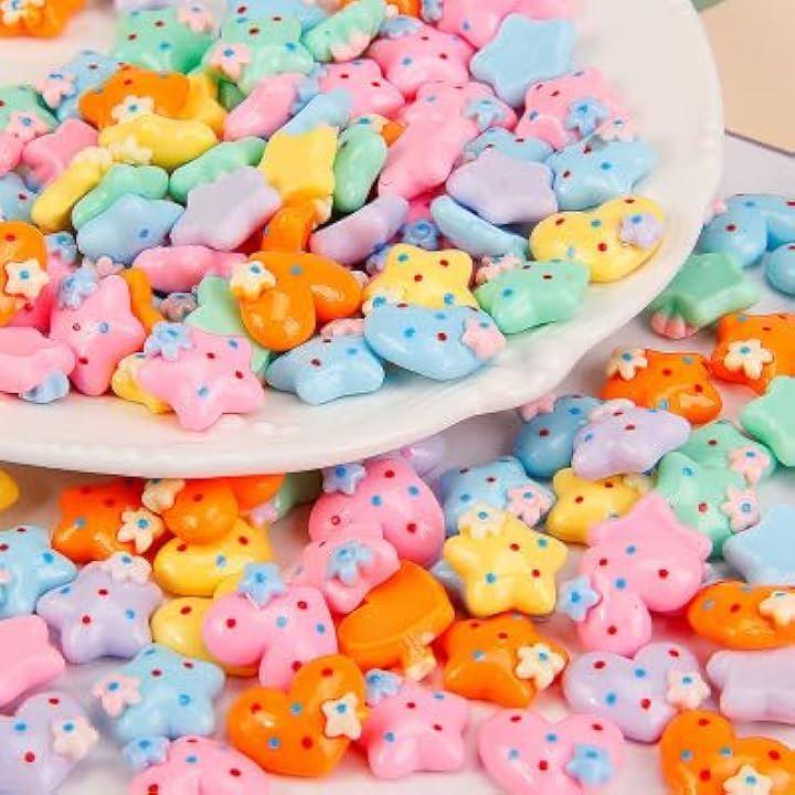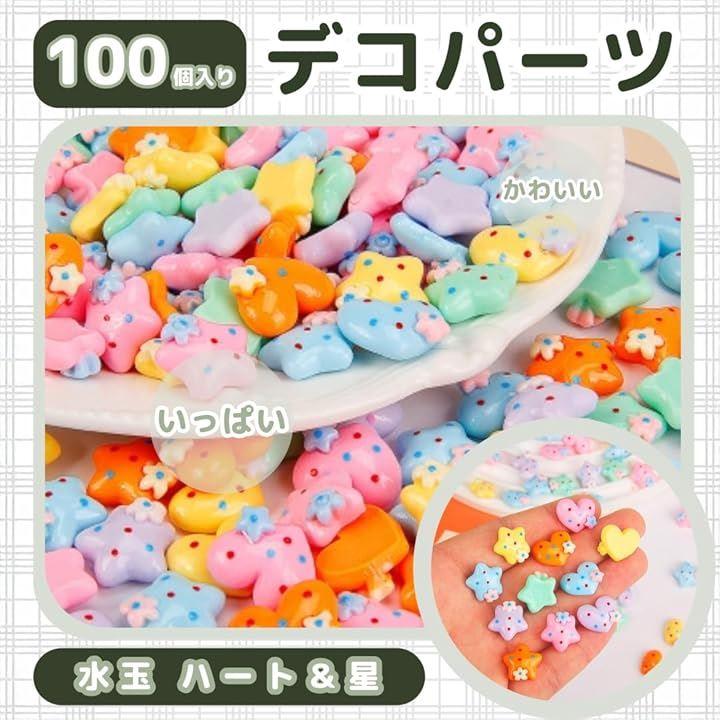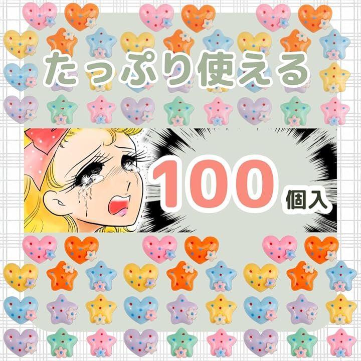 盛り盛り100個入り。たっぷり使えるボリュームで、デコ初心者から上級者まで大満足。 ポップで可愛いパーツをランダムに100個詰め合わせてお届けします。