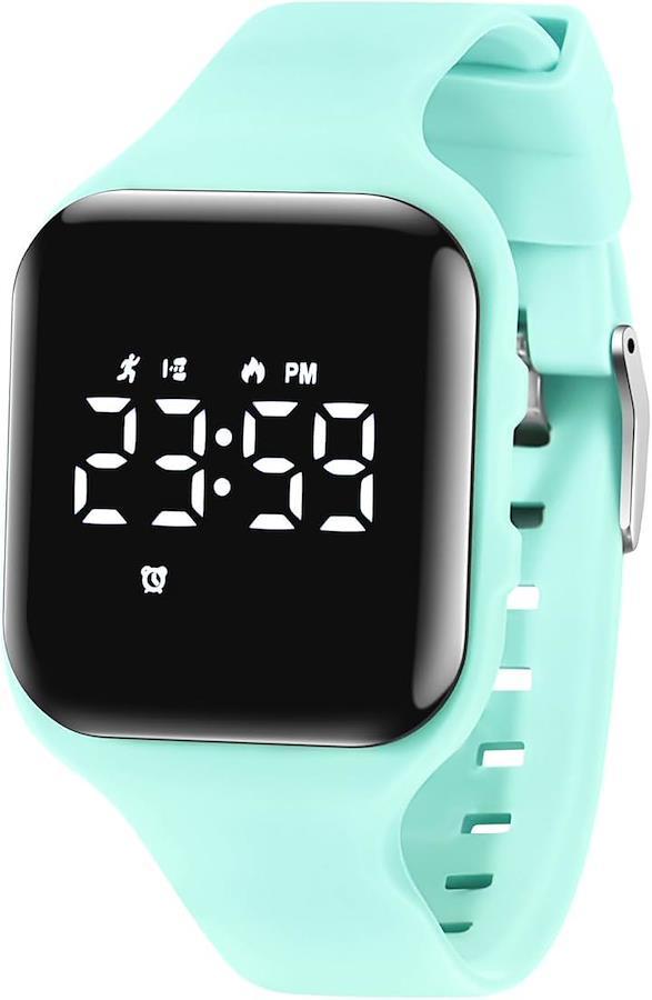 歩数計、歩行距離、カロリー、ストップウォッチ、目覚めし、日付曜日表示の機能を搭載し、携帯電話に接続することなく使用できるミニのスマートウォッチ。