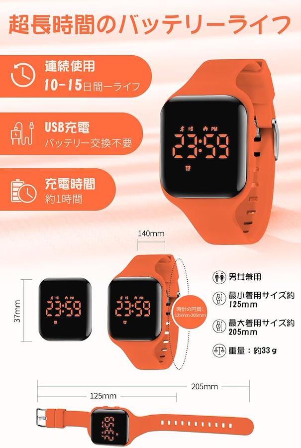 [USB充電式-長持ちバッテリー]:充電式 デジタル腕時計は便利な充電式のデザインを採用しており、使いやすく、電池交換も必要ありません。