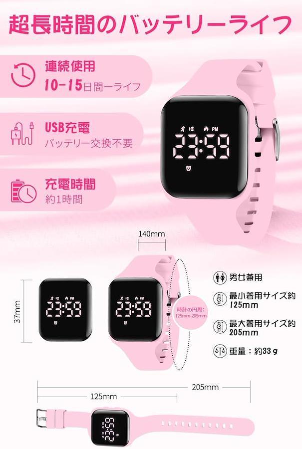 [USB充電式-長持ちバッテリー]:充電式 デジタル腕時計は便利な充電式のデザインを採用しており、使いやすく、電池交換も必要ありません。