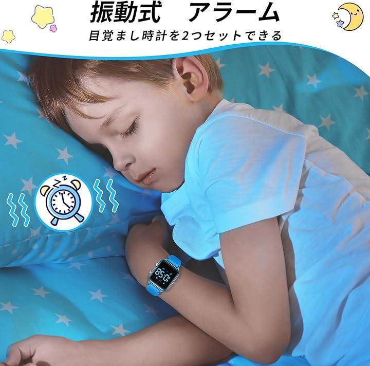 静音振動目覚まし時計:デジタル時計は2つの静音振動目覚まし時計を設置でき、子供の学習や休憩時間の管理を助けることができます。
