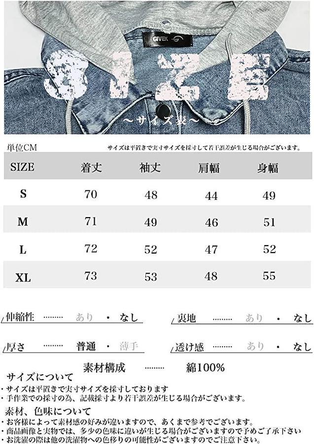 ・v「取り外し可能フード」一枚羽織るだけでお洒落になれるデニムジャケット・ 取り外し可能な フードが付いているのがポイント。 Tシャツの上にサラッと羽織るだけで、簡単に大人カジュア ルなコーディネートが完成・ コーディネートの幅を広げたり、ちょっとした外出や体温調節にな にか1枚羽織りたいときに大活躍するアイテムです・