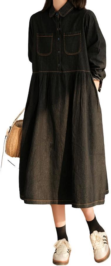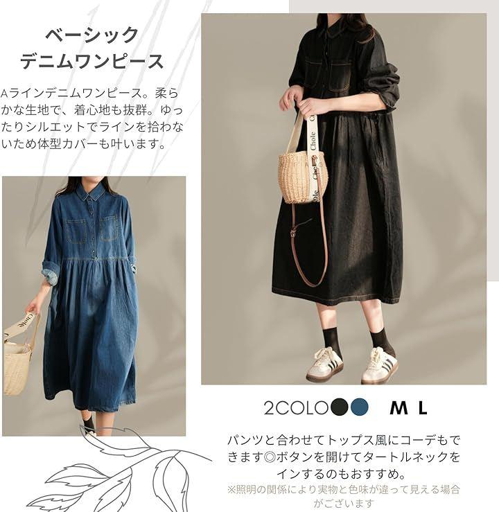 Aラインデニムワンピース ロングシーズン楽しんでいただける襟付きデニムワンピース。