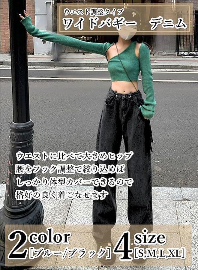 股上が深くヒップから裾にかけて太くゆったりとしたデザインのウエストが絞れるワイドバギーパンツです。