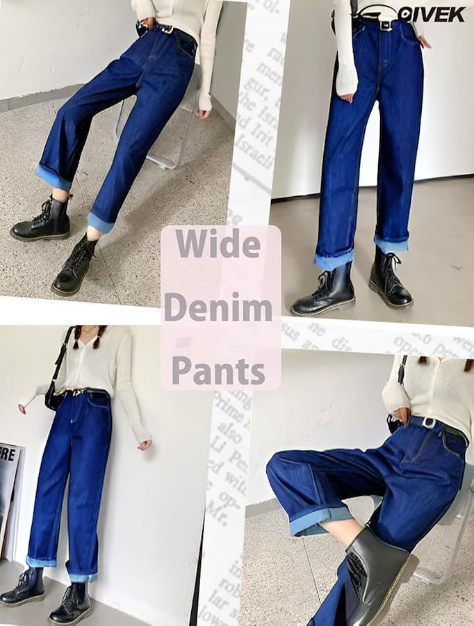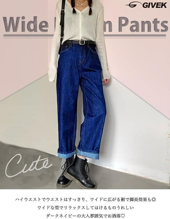 「ハイウエストで脚長効果 」 裾に向かって広がるゆったりワイドフィットのデニムパンツ。