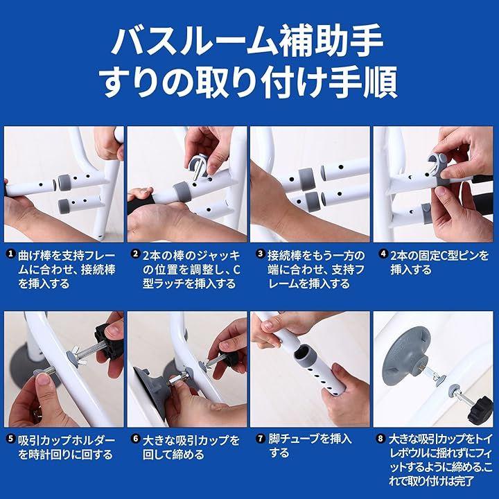 簡単な操作のトイレサポート手すり: このトイレ用グラブバーをより早く取り付けるために、日本語の取り付け説明書が付属しています.工具不要なので、手先が不器用な方でも簡単に取り付けられます.重くて安定感がある