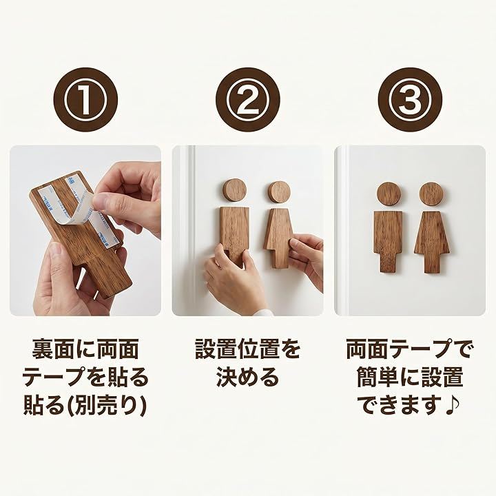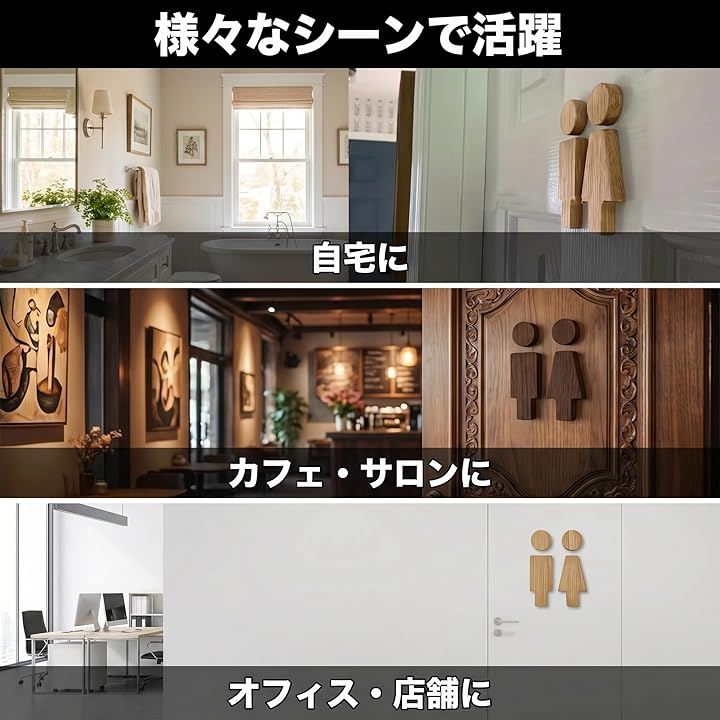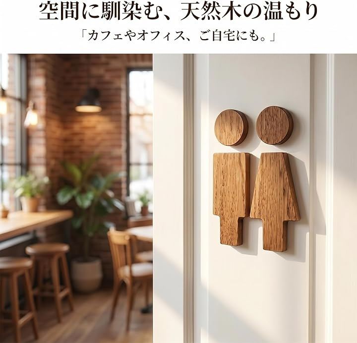 温かみのある木目が空間に自然と馴染み、カフェや店舗、ご家庭のトイレ表示に最適。