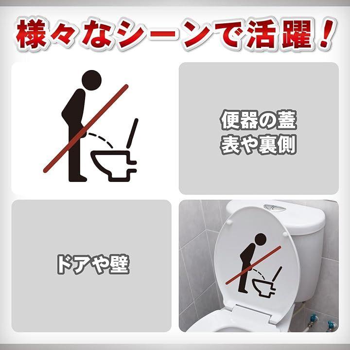 レストランやホテル、ショッピングセンターなど、便器だけでなくドアや壁など、あらゆる場所に貼ることができます。