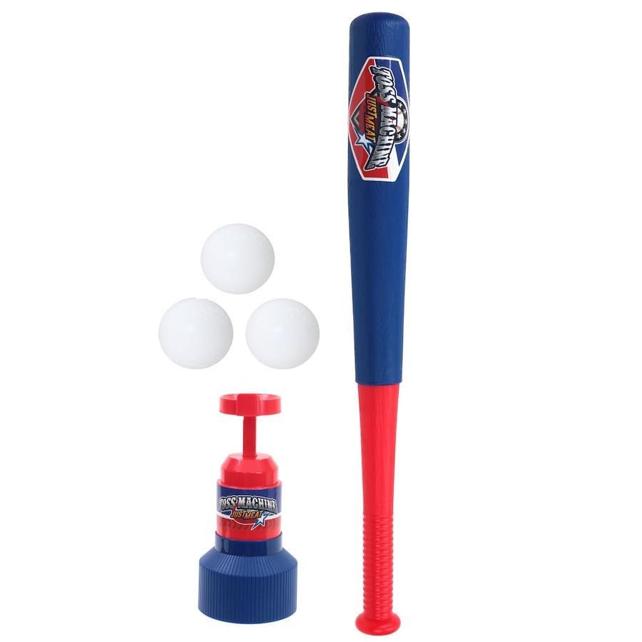 ひとりでも遊べるトスマシンセット!ボールをセットするだけ!持ち運び便利な伸縮バットボール3個入り電池不要ですぐ遊べる。