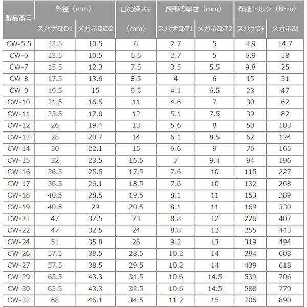 ●ボルト・ナット等の二面幅に合わせてご使用ください