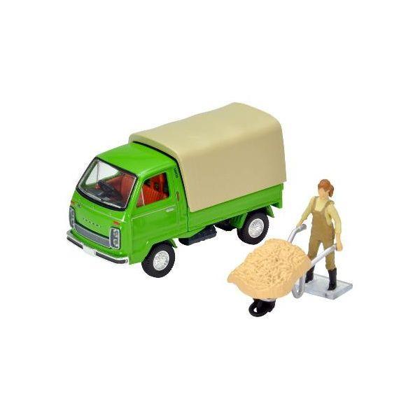 別売りのフィギュア付属のミゼット(LV-143d)やポーターキャブ(LV-198a、b)、ダットサントラック(LV-195b、c)、ダイハツCO10T(LV-12d)、#カースナップ各種といったシリーズと組み合わせると、より一層クルマのある世界観が拡がります。縦目が特徴的なTN-Vトラックに新仕様