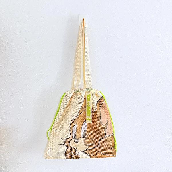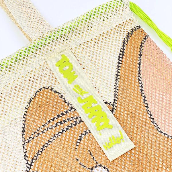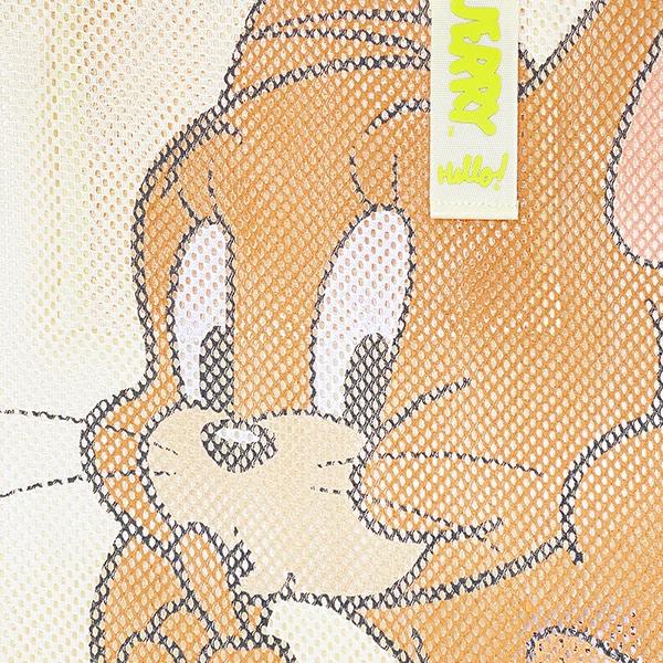 大きくキャラクターがプリントされたアイコニックなトムとジェリー(ジェリー)のトートバッグです。柔らかく軽やかなメッシュ素材と鮮やかなカラーが夏のお出かけにぴったり☆サイドの紐で巾着のように口を絞ることができます。中身が透けて見えるので抜け感があり、どなたでも持ちやすいデザイン!ロゴのテープもおしゃれなポイントです♪