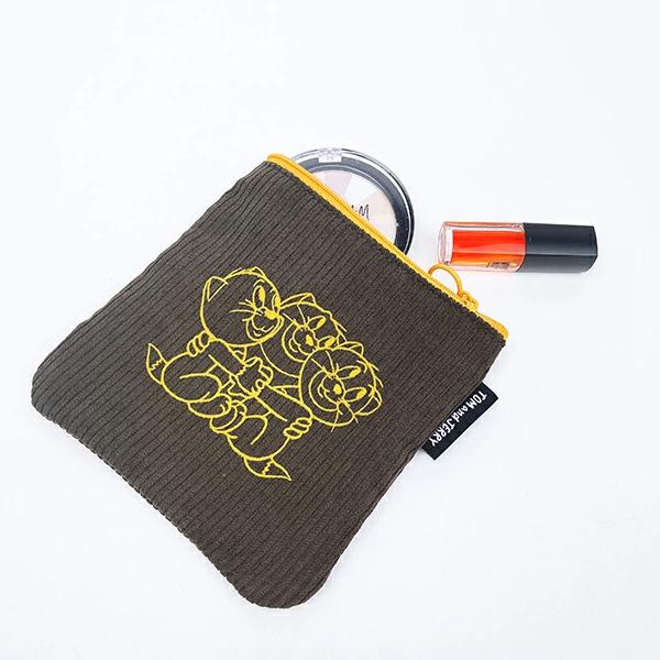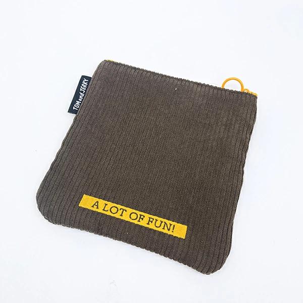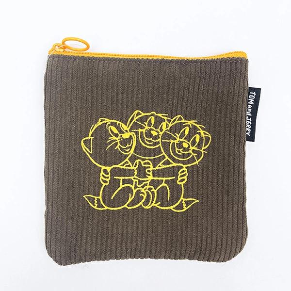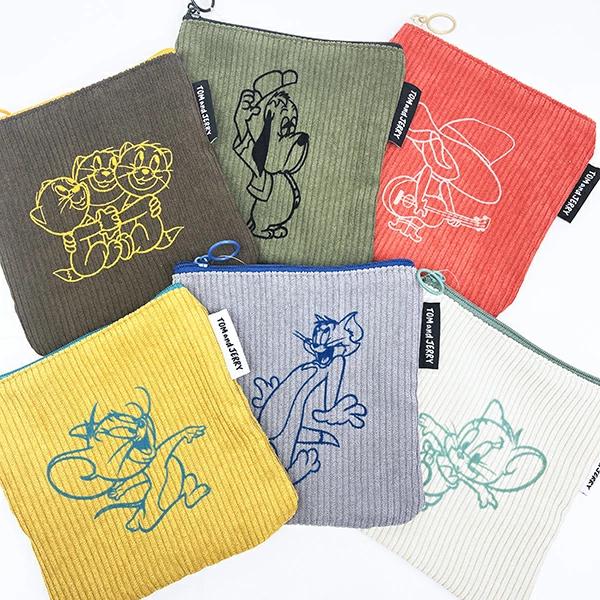 トムとジェリー(3匹の子猫)のフロッキー配色フラットポーチです。コスメやイヤホン、ケーブルなどの小物をまとめて入れておくのに◎同じデザインのトートバッグやラバーチャームがあるので統一すれば可愛さMAX♪トムとジェリーのフレンズシリーズなのでトムジェリ好きにはたまりません!!コーデュロイ生地との組み合わせでシンプルながらも温かみがあるのがポイントです☆彡