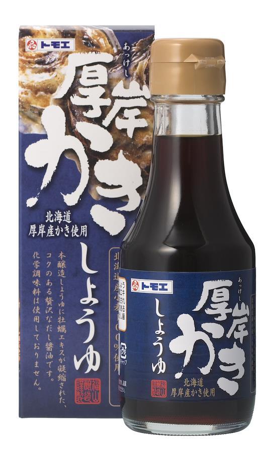 原材料:しょうゆ(本醸造)(大豆(北海道産)、小麦(北海道産))、糖類(砂糖、果糖ぶどう糖液糖)、牡蠣エキス(北海道厚岸産の牡蠣を使用)、昆布エキス、鰹エキス、酵母エキス、発酵調味料、椎茸エキス、酒精