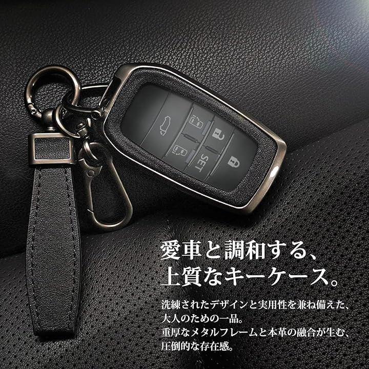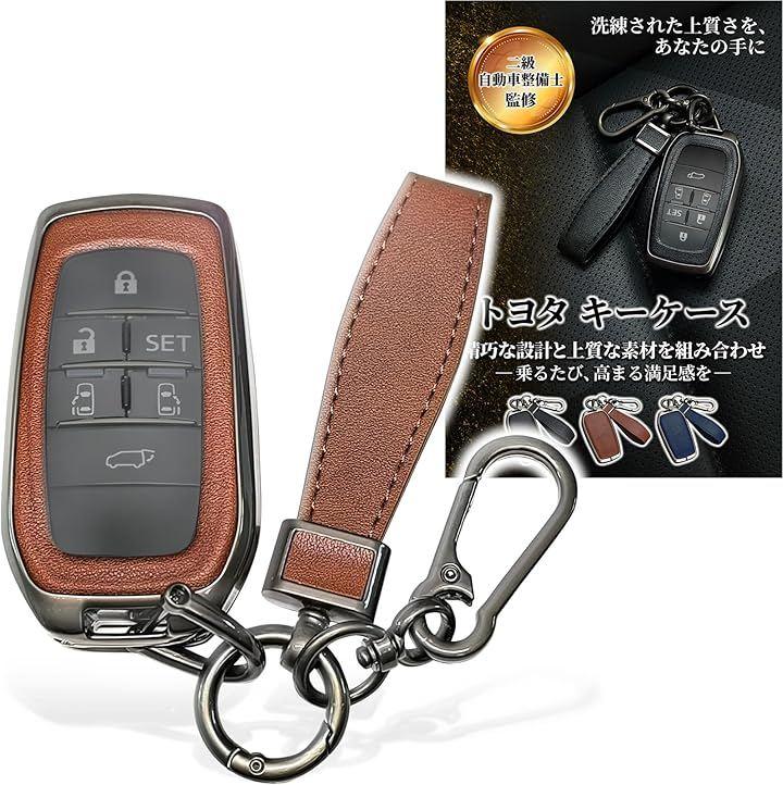 「スペック」 対応車種: トヨタ 主要モデル(詳細は適合表をご確認ください) サイズ:縦82mmx横45mmx厚み20mm カラー: エグゼクティブブラック、クラシックブラウン ロイヤルブルー 3種 素材: 亜鉛合金 + 本革 注意点: スマートキーの形状により対応しない場合があります。