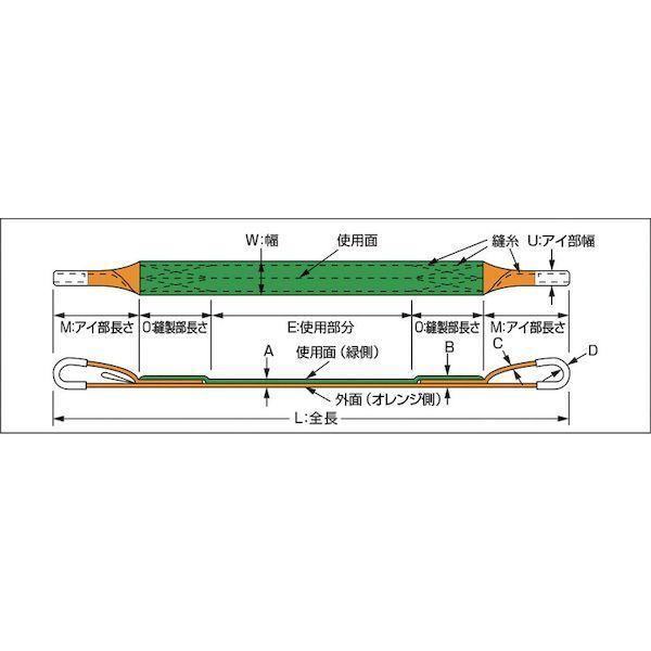 ●グリーン面(使用面)とオレンジ面(外面)が色分けされています。(ベルトスリングの構造上、グリーン面(使用面)とオレンジ面(外面)では耐久性が異なりますので、グリーン面(使用面)で正しく使用してください。)