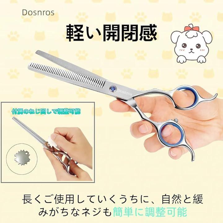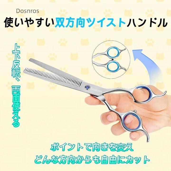 初心者さんでも安心のペット用すきバサミ xプロ仕様だから、切れ味は抜群です x人体工学に基づいた形状のため、手にフィットしやすく疲労感を抑えます。