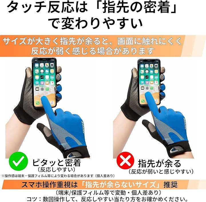 「タッチパネル操作をサポート」 人差し指と親指はタッチパネルに対応しており、スマートフォンの操作もスムーズです。