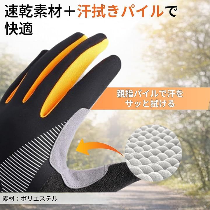 「こだわり設計」 親指部分には汗ふきパイルが付いており、汗を拭くことができます。