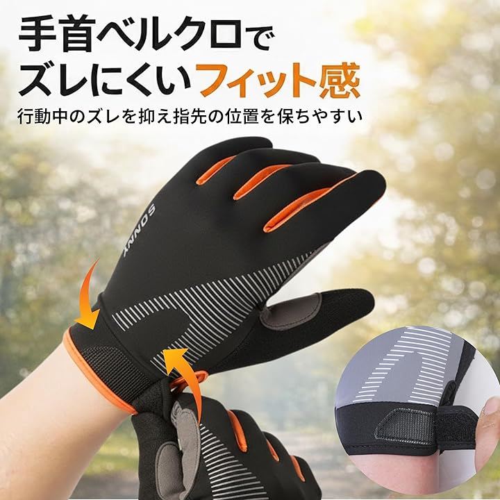 「手首の調整可能」 テープで手首を調整できるので、個々の好みに合わせてフィット感を調整できます。