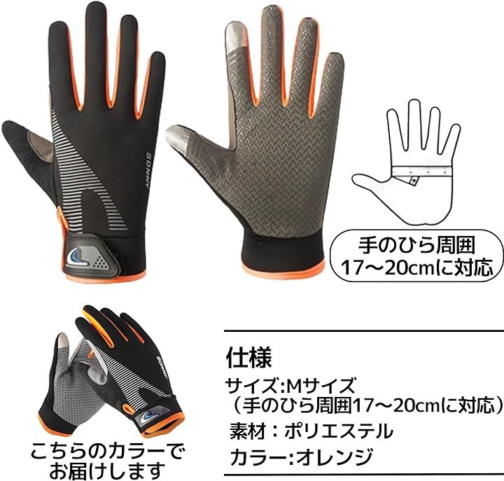「仕様」サイズ:Mサイズ(手のひら周囲17~20cmに対応)、素材:ポリエステル、カラー:オレンジ