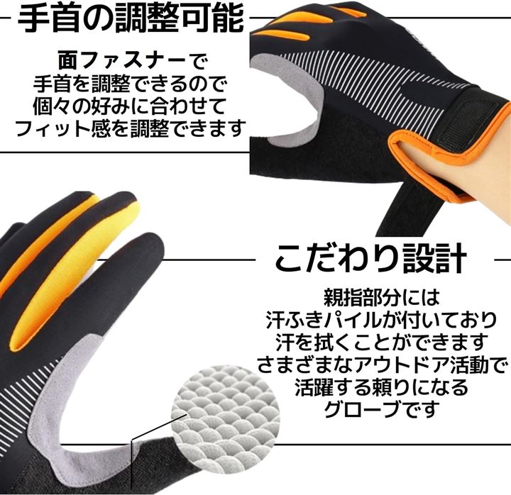 「手首の調整可能」 面ファスナーで手首を調整できるので、個々の好みに合わせてフィット感を調整できます。