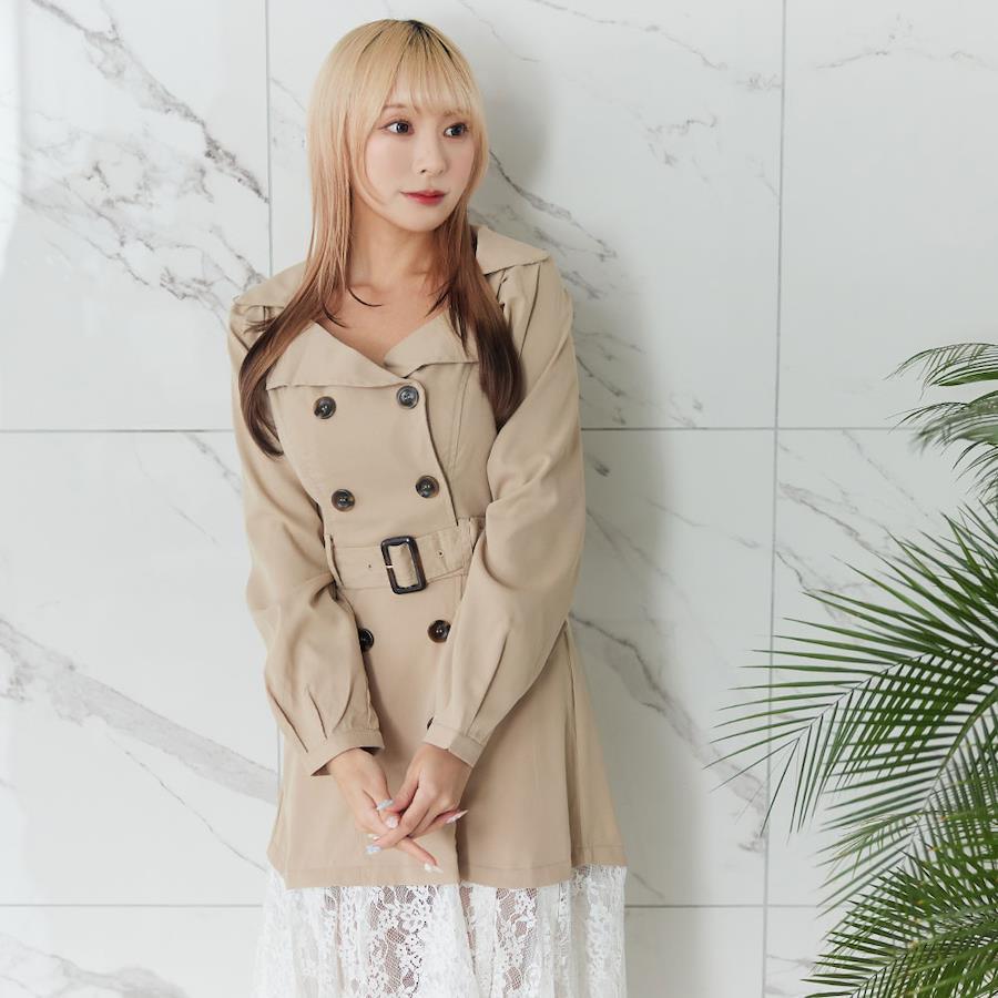トレンチデザインにレースを落とし込んだデザイン性の高い一枚。デコルテが綺麗に見えるスクエアネックを採用し、立体的なパフスリーブが女性らしさを引き立たせてくれます。さらに、付属のベルトでウエストマークができるのでスタイルアップ効果も!360°どこから見ても綺麗なシルエットに仕上げました。