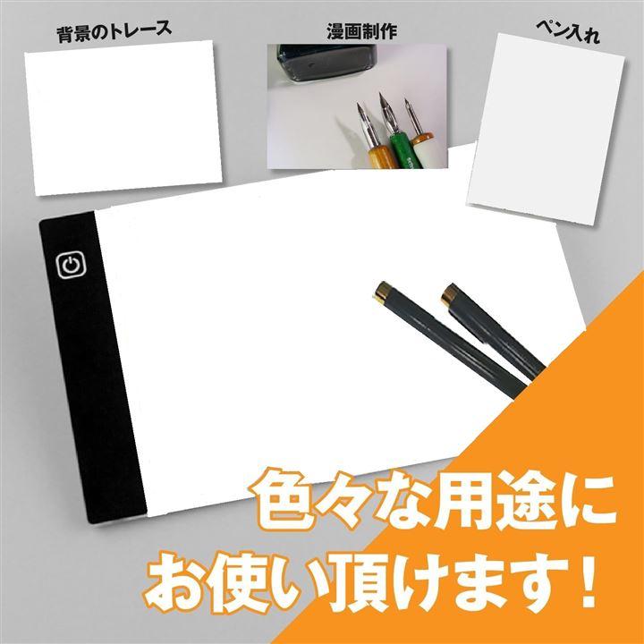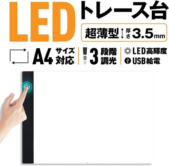 発光部分にA4用紙がしっかり収まる、使い勝手の良いA4サイズ対応のL E Dトレース台です。