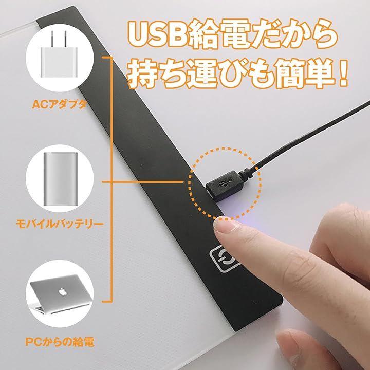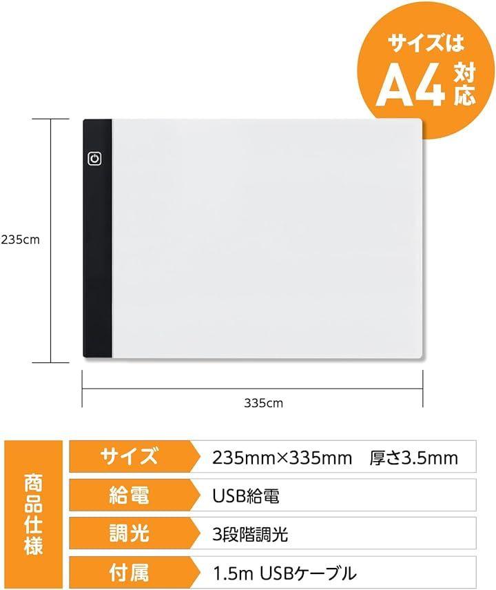 サイズ:235mmx335mm(発光部210mmx300mm)、Micro-USB/5V、1.5mケーブル、3段階調光