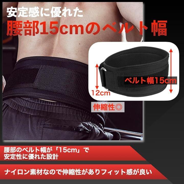 「安定感のある幅広設計」ナイロン製のトレーニングベルトは軽量で腰幅が15cmと安定感が優れた設計です。