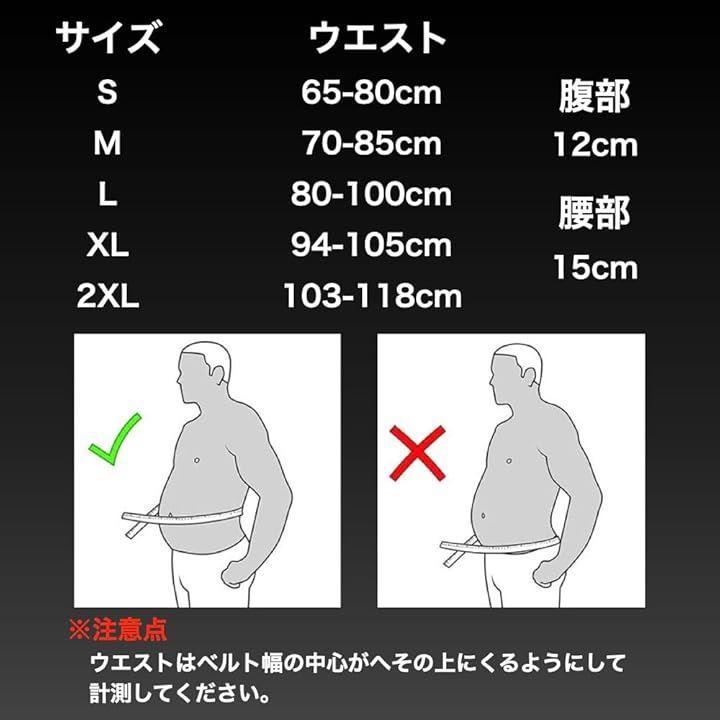 「ウエストサイズ」S:約65-80cm 、M:約70-85cm、L:約80-100cm、XL:約94-105cm、2XL:103-118cm