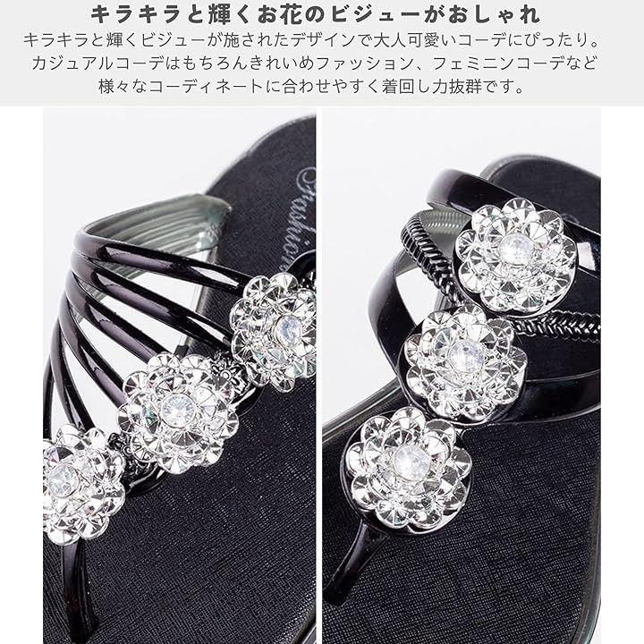 キラキラと輝くお花のビジューが施されたデザインで大人可愛いコーデにぴったり。