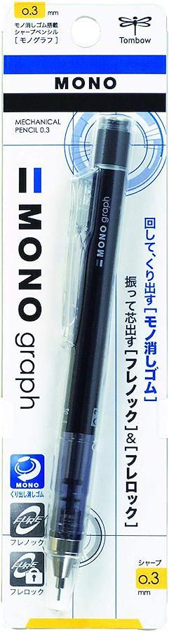 ●仕様:「モノ消しゴム」搭載のシャープペンシル。高精度の「書く」と「消す」を1本で実現。パック入り。◆材質:軸:アクリル樹脂、先端:金属、グリップ・クリップ:ポリカーボネート樹脂◆本体サイズ:最大幅10×全長147mm◆本体重量:17g◆機構:フレノック式(ロック機能付き)、クリップノック式 ◆回転繰り出し式消しゴム付き(MONO品質) ◆製図仕様のペン先 ◆パック仕様 ◆芯径:0.3mm◆替え消しゴム:ER-MG