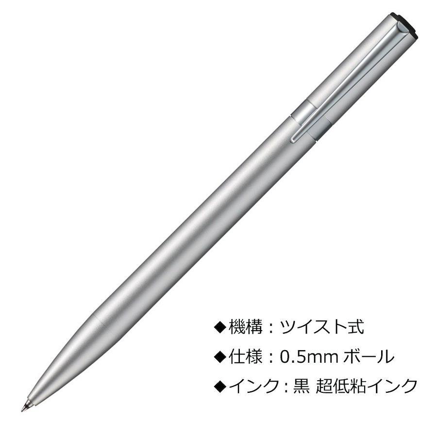 極力凹凸を省く事で研ぎ澄まされたシンプルなストレート形状のボディのボールペン。