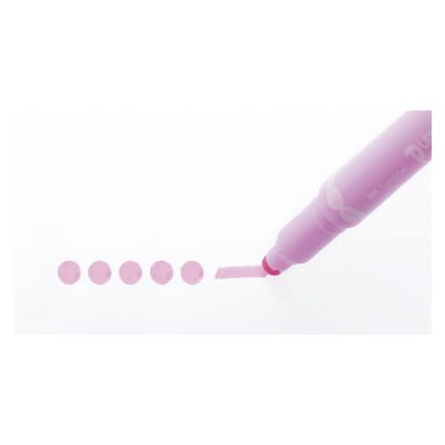 ドットが描ける丸スタンプ芯と0.3mm超極細芯のツインタイプ水性カラーペンです。。ドットのスタンプは直径約5mmで線も描けます。。スタンプはやわらかい色、超極細芯は濃いクッキリした色。。※詳細画像に別カラーの商品を使用しております。。線幅:超極細0.3mm/丸スタンプ約5mm。インク種類:水性染料使いきり。。サイズ:縦=141mm 横=7mm 厚さ=7mm。