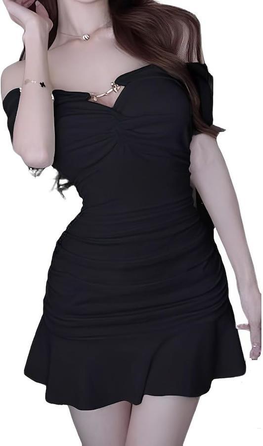 TOASOA Off-the-shoulder One-piece Mini Women's Short Sleeves Chest Hostess Hostess Cocktail Night Work Costume Cosplay Cleavage Emphasis Twist Sexy Mermaid