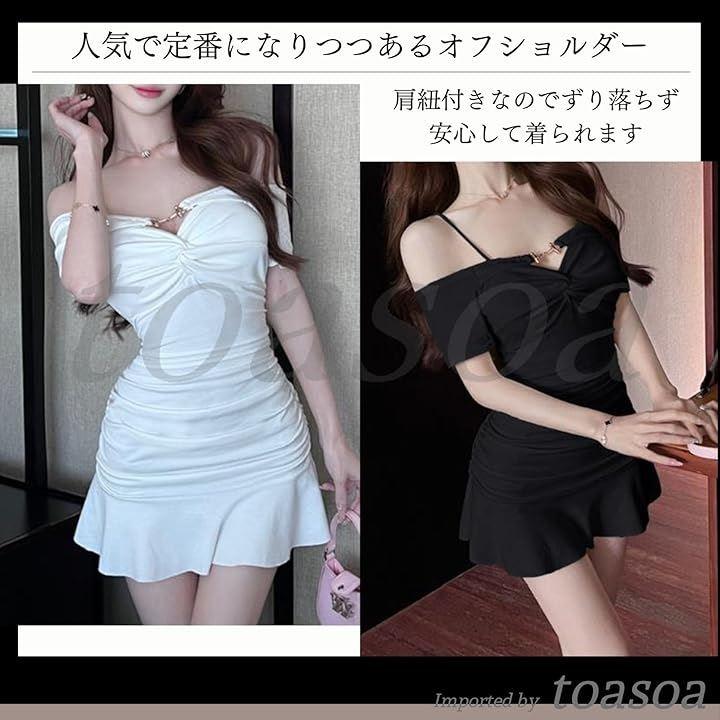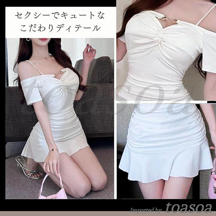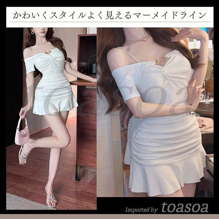 TOASOA Off-the-shoulder One-piece Mini Women's Short Sleeves Chest Hostess Hostess Cocktail Night Work Costume Cosplay Cleavage Emphasis Twist Sexy Mermaid