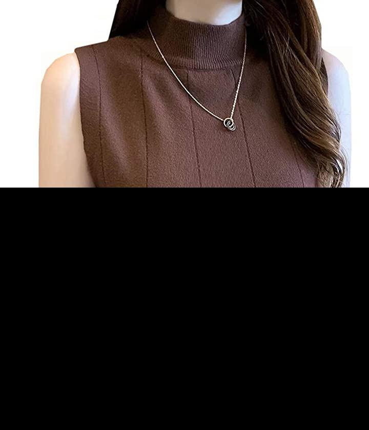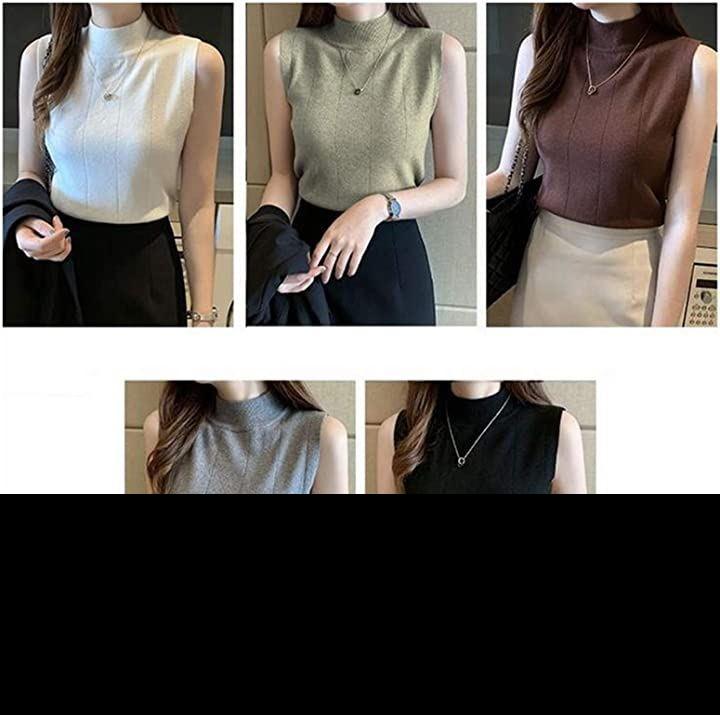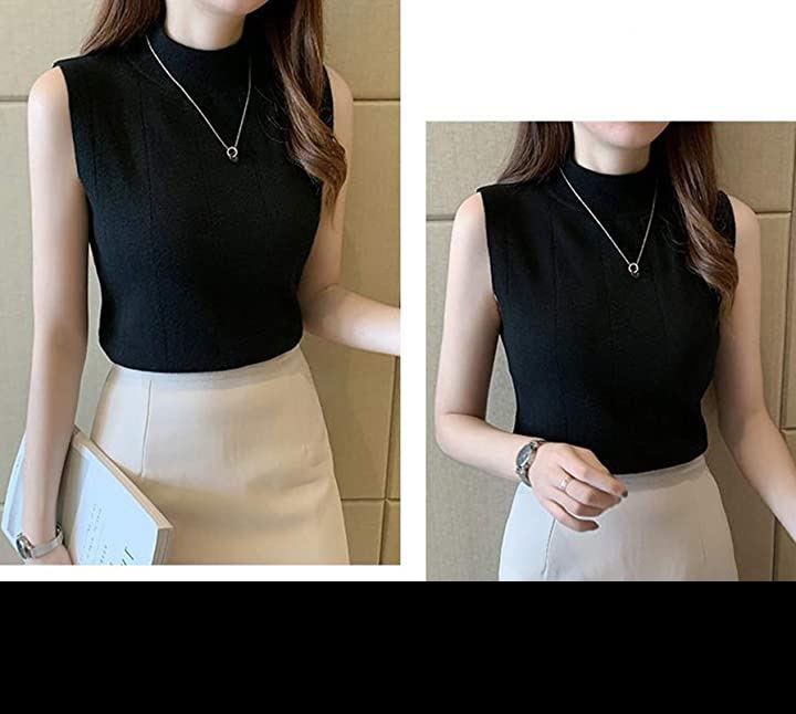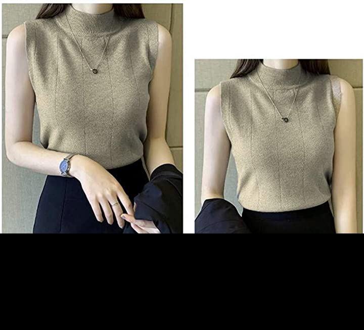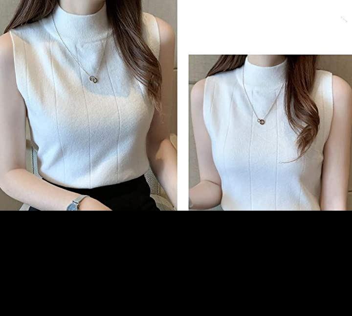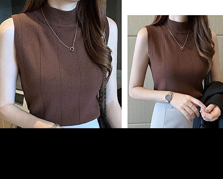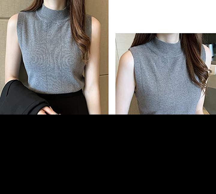 ベーシックなカラーが着回し力抜群の大人かわいいハイネックノースリニットトップスです。