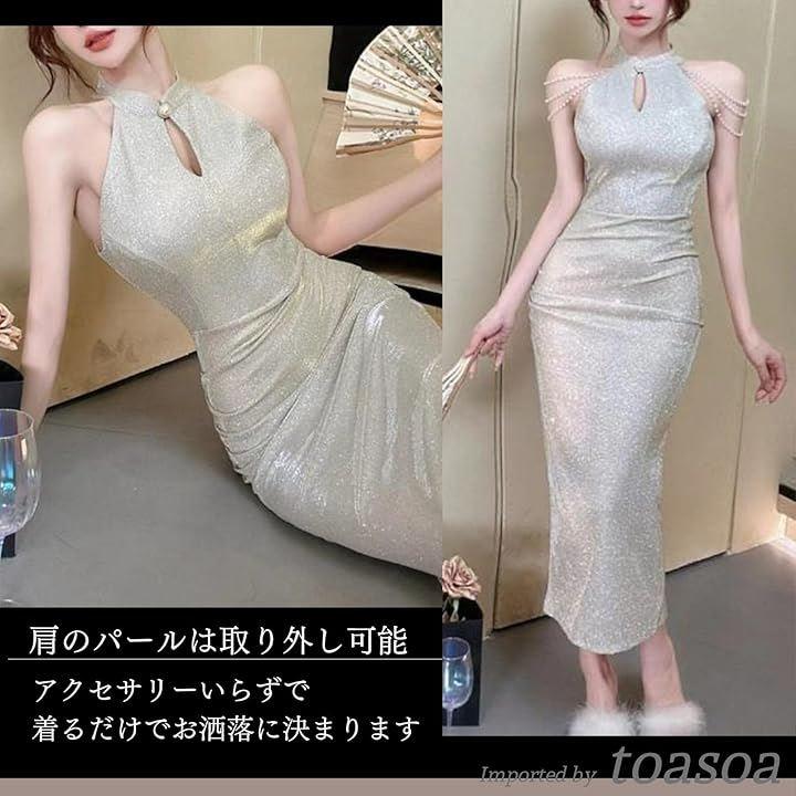 ボディラインを美しく見せてくれるタイトなシルエットのチャイナ 風 デザイン ドレス ワンピース。