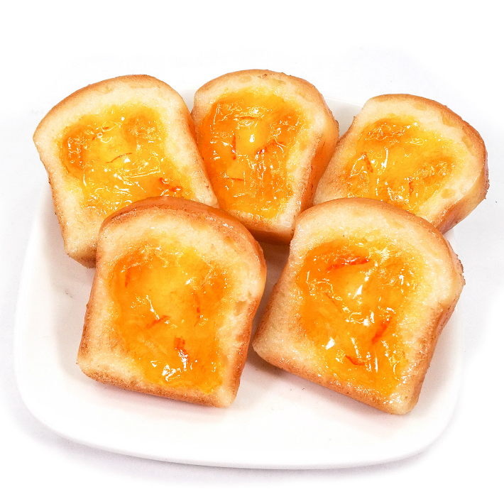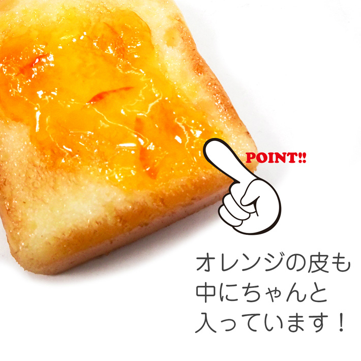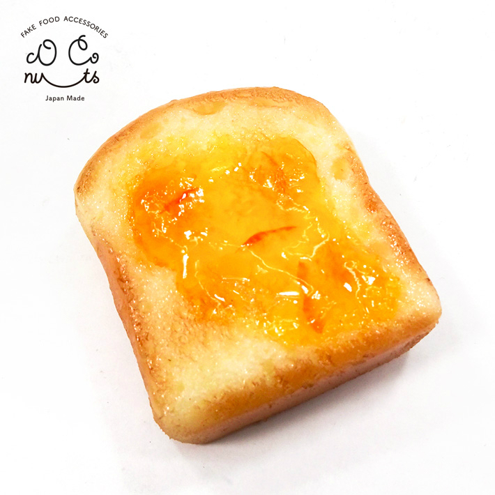 本物のトーストそっくりに作られた食品サンプルのキーホルダーです。大きさは約4.5cmのミニサイズです。オレンジマーマレードをたっぷりとぬりました。