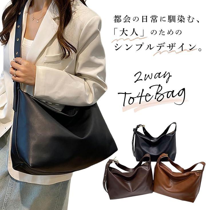 都会的で洗練された印象を与える、シンプルかつ高級感のある大容量レディーストートバッグです。