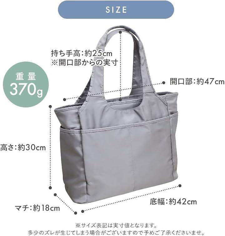 「サイズ・素材」 横:約42cm/縦:約30cm/マチ:約18cm/持ち手:約27cm/素材:撥水加工ナイロン。