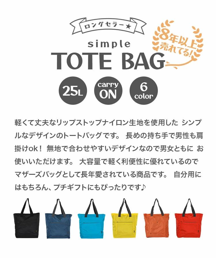 【トートバッグ】軽くて丈夫なリップストップナイロン生地を使用したシンプルなデザインのトートバッグです。長めの持ち手で男性も肩掛けok!無地で合わせやすいデザインなので男女ともにお使いいただけます。大容量で軽く利便性に優れているのでマザーズバッグとして長年愛されている商品です。自分用にはもちろん、プチギフトにもぴったりです♪