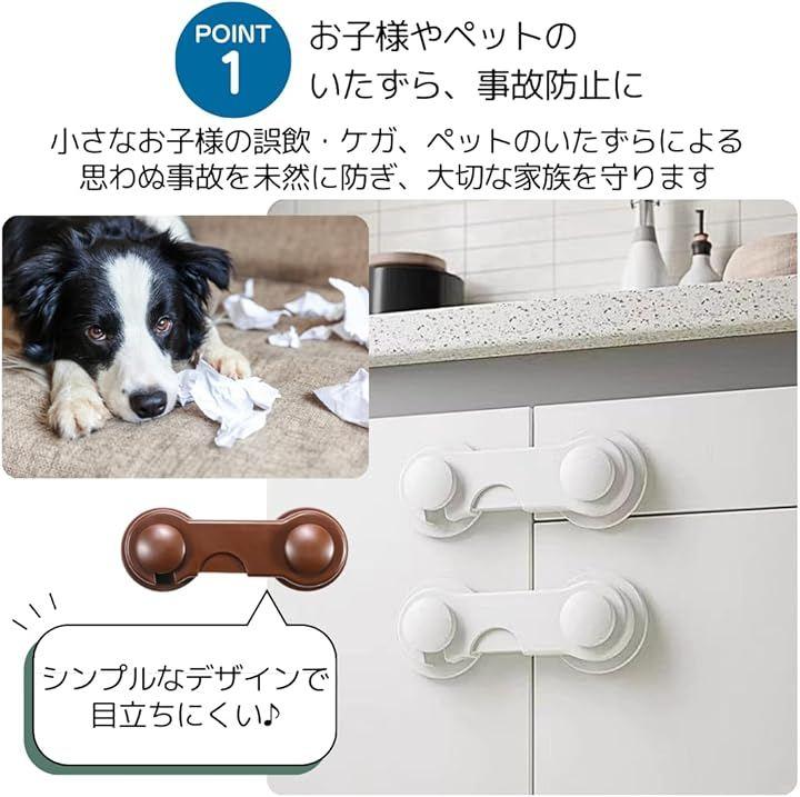 「お子様やペットのいたずらもこれで解決」食器棚や収納棚、引き出しや扉など、あらゆる場所のいたずら対策に。小さなお子様のいるご家庭で特に大活躍。